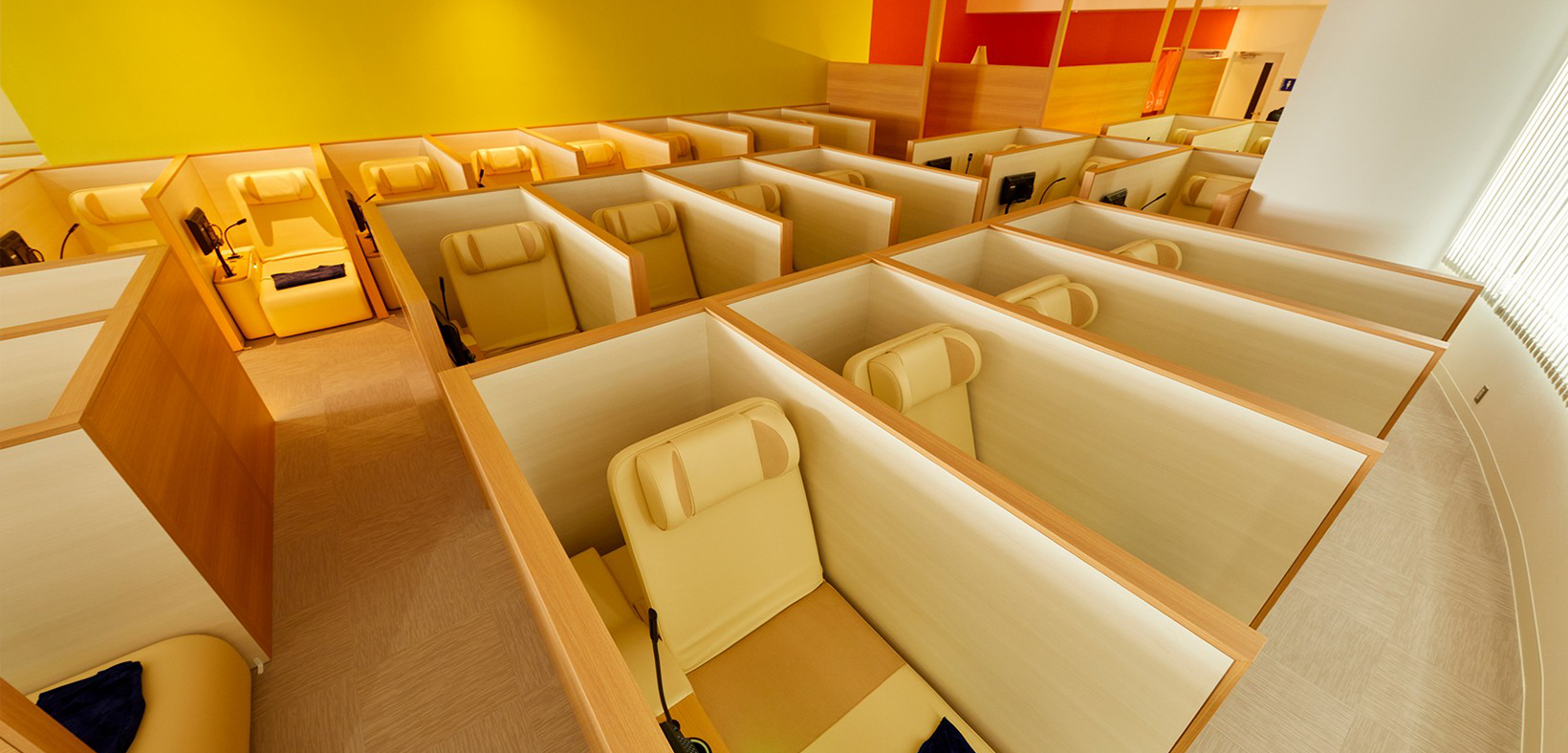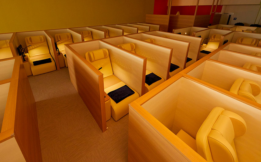 全47席(内女性専用9席)のリクライニングシートで快適に時間を過ごすことができます。ブースごとにパーテーションもありプライベート空間も楽しめます。