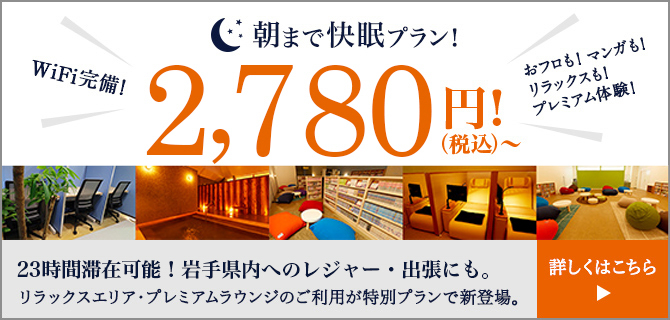 女性専用多目的ルーム女性向けのコミックもご用意。周りを気にせずお楽しみいただけます。「ダメになるクッション」も完備。パウダールームも充実。