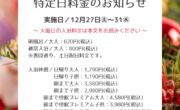 12月の営業案内(休館日・特定日料金)※年末年始の料金も掲載しております
