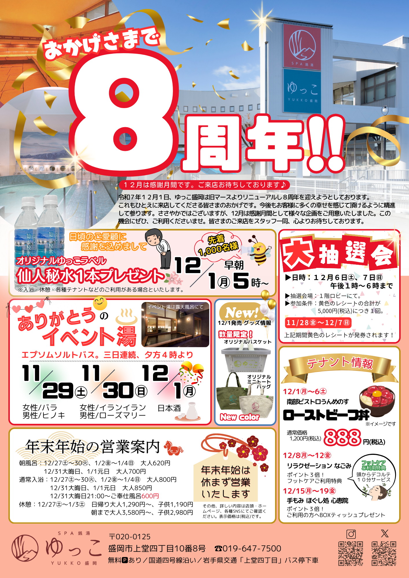 令和7年12月1日、ゆっこ盛岡はリニューアル8年を迎えます。