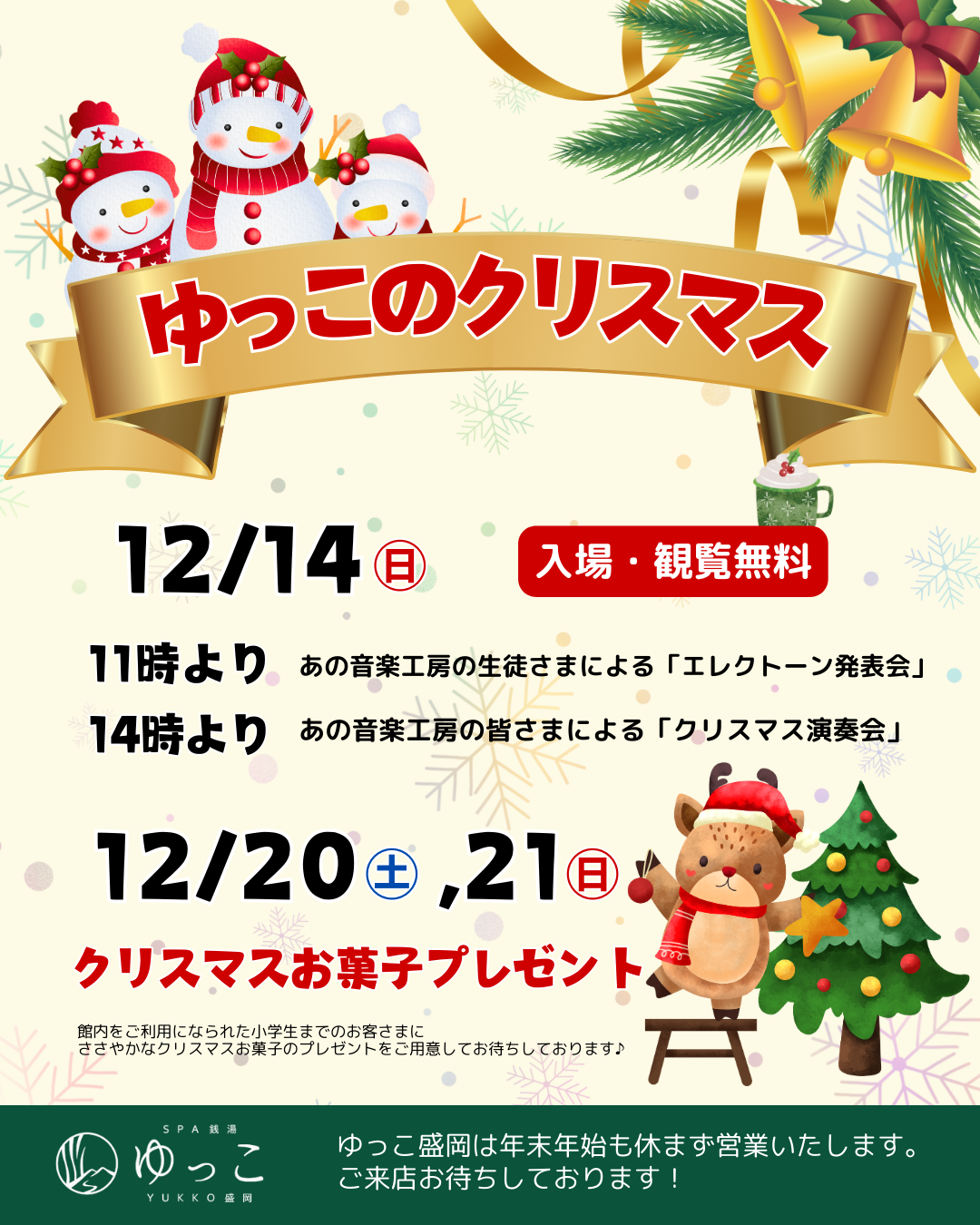 - ゆっこ盛岡では今年もクリスマスイベントを予定しております。