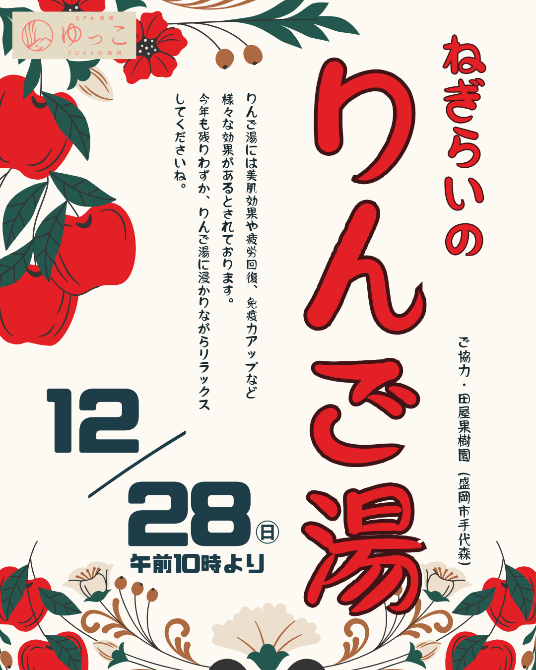 • 今年も最後の日曜日に『りんご湯』を実施いたします。