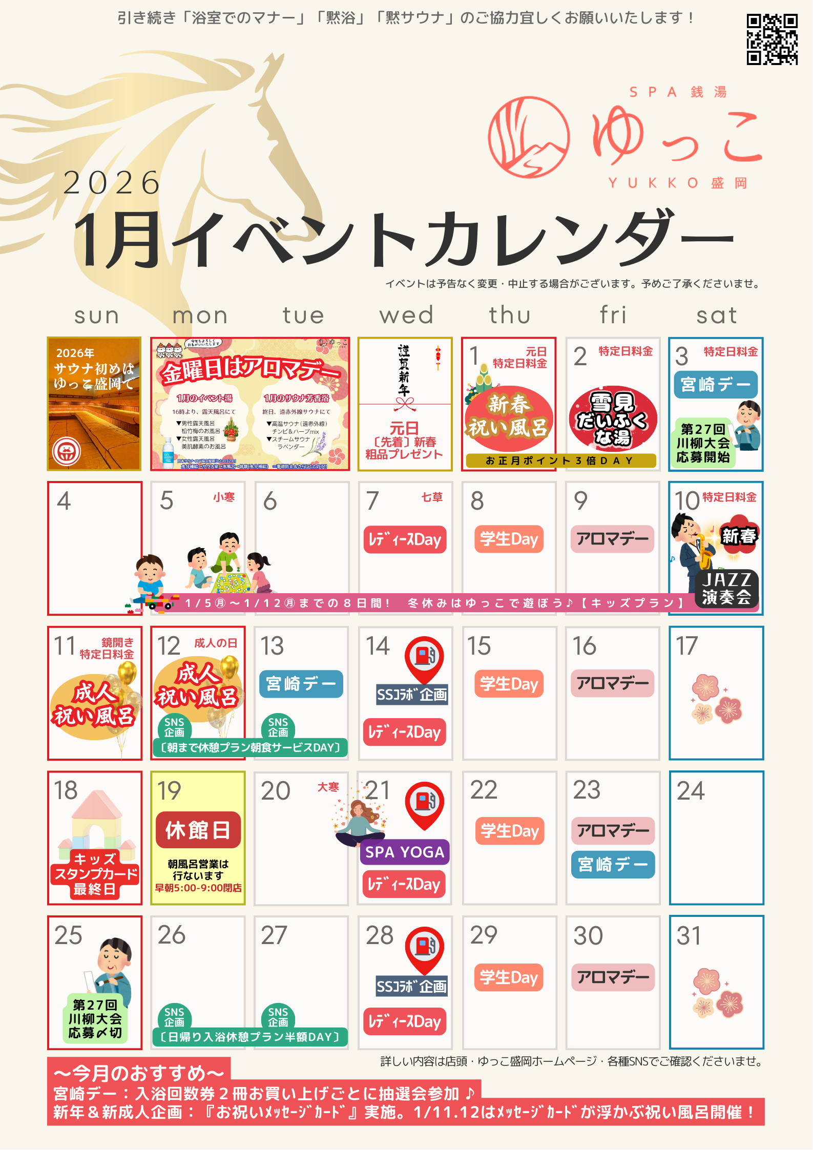 • 令和8年1月のイベントカレンダーを掲載いたします。