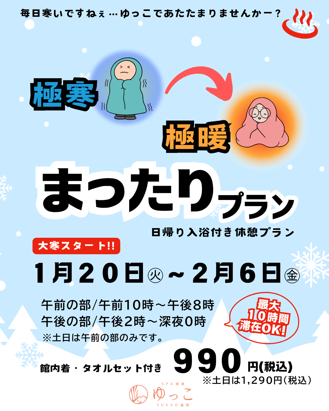 - 今回は昨年短期間実施した冬のまったりプランを期間拡大で実施いたします。