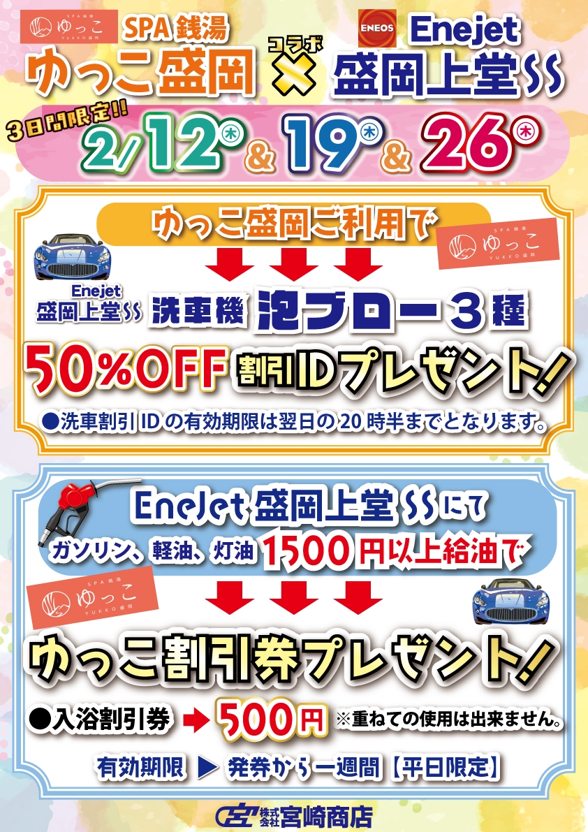 - ㈱宮崎商店、Enejet盛岡上堂SS×ゆっこ盛岡 コラボ企画のごあんない